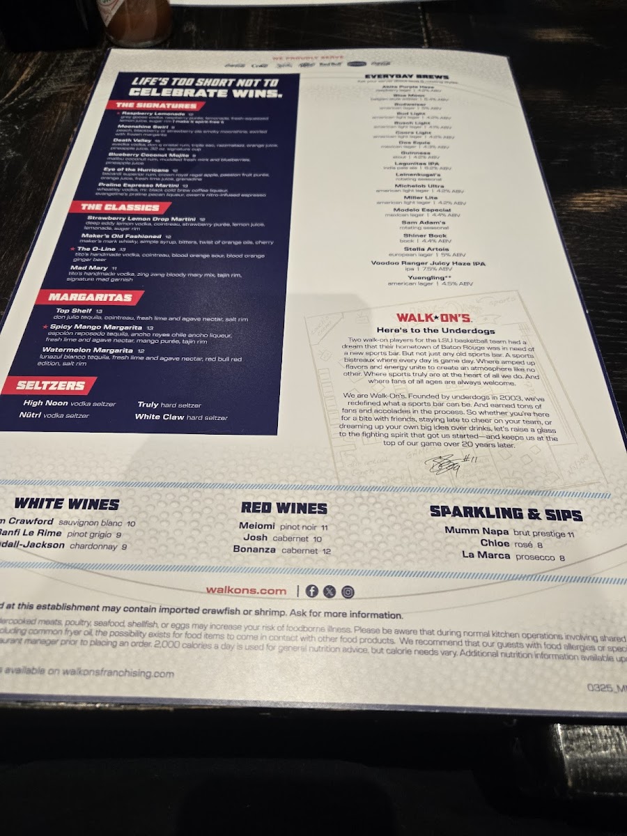 Welcome to Walk-On's Sports Bistreaux in Thibodaux, LA, where sports and scrumptious bites unite! The menu features a delightful blend of Cajun classics and signature entrees that reflect the vibrant local culture. Start your culinary adventure with the Spinach & Artichoke Dip paired with crispy tortilla chips, or dive into a plate of Boom Boom Shrimp for a zesty kick.